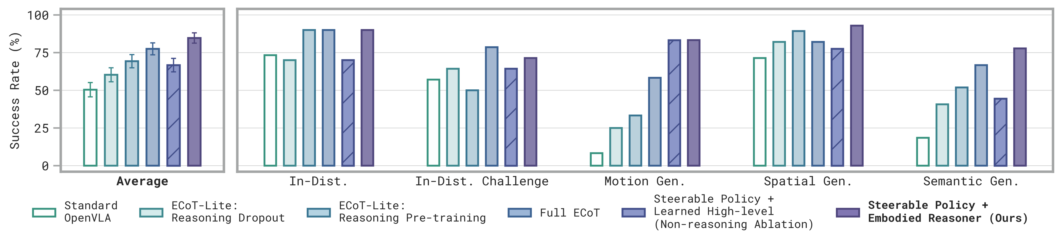 Controlling Steerable Policies with high-level embodied reasoning VLMs is an effective approach for generalizable control.